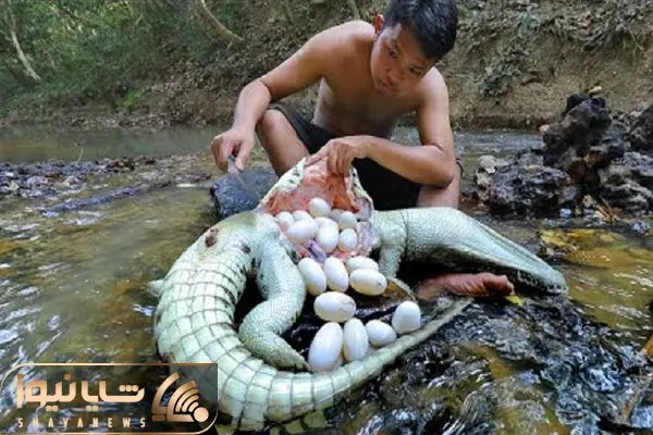 باور نکردنی است که تعداد زیادی تخم مرغ در شکم کروکودیل پیدا شده و سپس برای شام پخته شد!