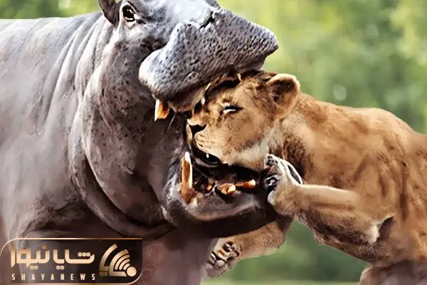 بدایع حیات وحش؛ اسب آبی شریر سر شیر با دندون له کرد گوشتش خورد استخونش تف کرد