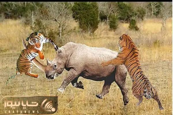 جذابیتهای حیات وحش؛ دوتا ببر از دست کرگدن سفاک شرحه شرحه و خوراک لاشخورا شدن