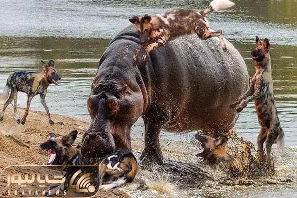شاهکار حیات وحش؛ کفتارای لاشخور به اسب آبی شبیخون زدن اونم با دندون پارشون کرد