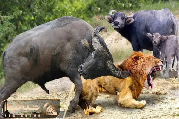 شاهکار حیات وحش؛ شیر شریر به نوزاد بوفالو حمله و اون با شاخ حلقشو پاره میکنه