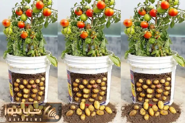 کشاورزی نوین؛ تو سطل جادویی محصول کاشتن از زیر سیب زمینی از بالا گوجه میده