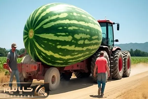 کشاورزی نوین؛ هندوانه و صیفی جات کاشتن به قدری بزرگ و سنگین شده 18 چرخ اومده ببره