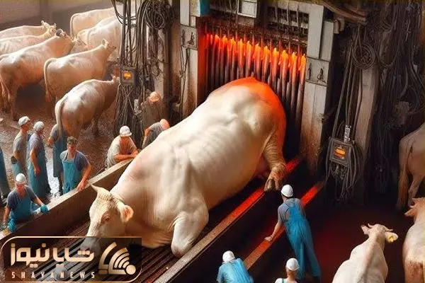 فرآوری گاو؛ گاو سنگین گوشتالو میره تو دستگاه از اونور گوشت راسته برش خورده میاد بیرون
