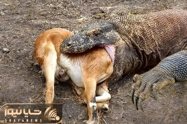 از بدایع حیات وحش؛ اژدهای کومودو بز و مثل ماکارونی کرد تو دهنش و با بزاغ فرو بلعید