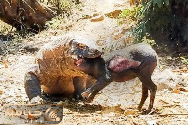 نارام زیان؛ کومودو سفاک با سرعت پلنگ دوید خوکی که مثله کرده بود رو نشخوار کنه