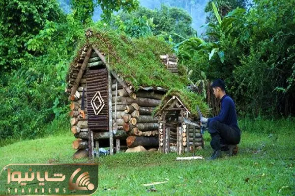 معماری خلاقانه؛ آقاهه 4 روزه دو تا کلبه جنگلی ساخته یکی واسه خودش یکی واسه سگش