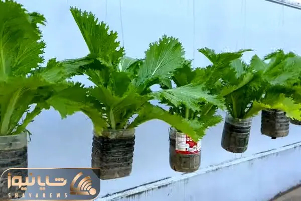 کاشت و برداشت خانگی؛ آقاهه تو بطری های پلاستیکی آب معدنی سبزی کاشته آویزون دیوار کرده