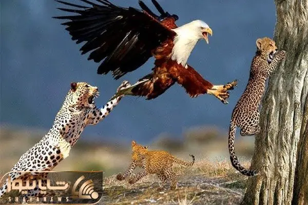 بدایع حیات وحش؛ عقاب بدسگال پلنگ کودن که در حال خوردن تمساح بود رو قاپید خورد