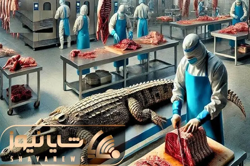 فرآوری تمساح؛ پوست تمساح و رنده میکنه گوشتشو استیکی برش میده استخونش میشه آبگوشت