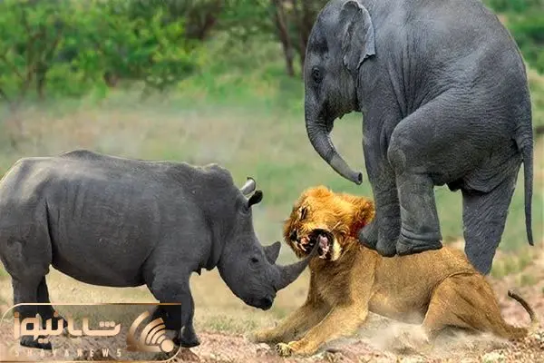شاهکار حیات وحش؛ کرگدن شریر وقتی شیر بچشو بلعید شاخشو فر کرد تو حلقش خون جهید