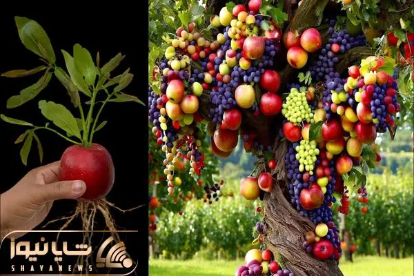 کشاورزی نوین؛ انگور و سیب رو با هم پیوند زدن یه درخت شده که هم انگور آویزونش هم سیب