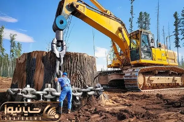 ابزارآلات غول پیکر؛ بیل مکانیکی غول مثل تبدیل شوندگان درختو کند بعد عین خیار خرد کرد