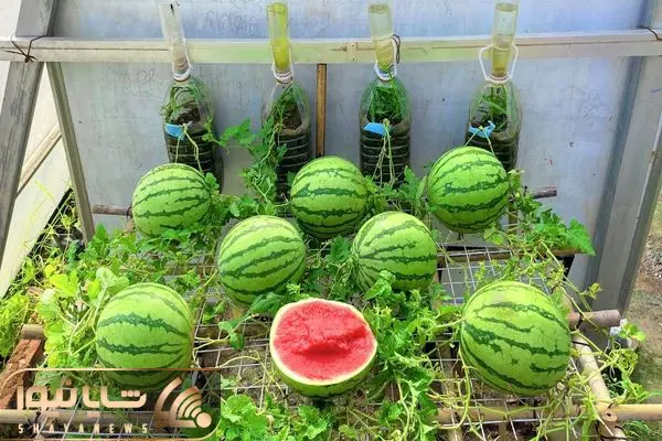 محصولات کشاورزی نوین؛ تو حیاط خونه و رو هوا نه خاک هندوانه کاشتن هر کدوم اندازه تایر
