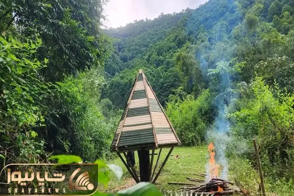معماری خلاقانه؛ آقاهه تو جنگل دست تنها با چوب درختا یه کلبه ساخته شکل چتر