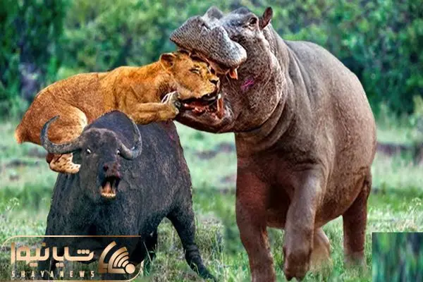 بدایع حیات وحش؛ اسب آبی سفاک گلوی شیر زمختی که داشت بوفالو و می بلعید جر داد