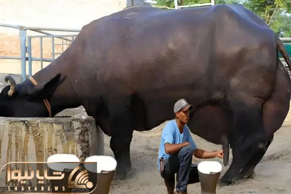 فرآوری گاو؛ گاو انقدر شیرش زیاده تنهایی نمیشه دوشیدش 2 نفری نشستن دارن میدوشن
