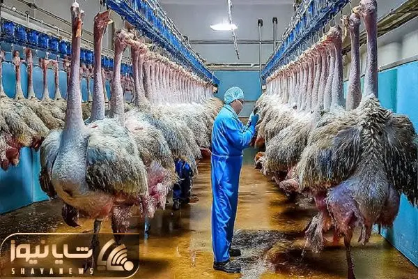 فرآوری شترمرغ؛ پر شترمرغ زنده و میکنن بشه پالتو با داس گردن میزنن واسه شیشلیک
