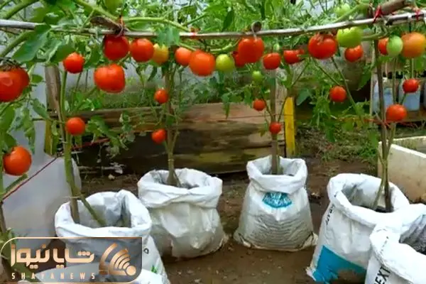 کاشت و برداشت خانگی؛ توی گونی گوجه فرنگی کاشته خروار خروار محصول برداشت کرده