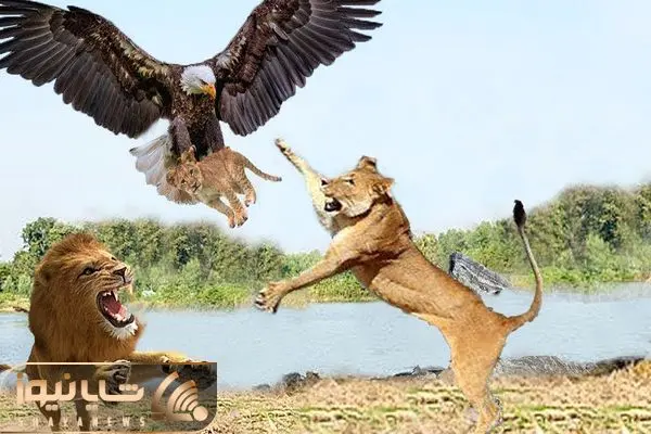 شاهکار حیات وحش؛ عقاب تیزبین ددمنش موقع قاپیدن توله شیر توسط مادرش جرواجر شد