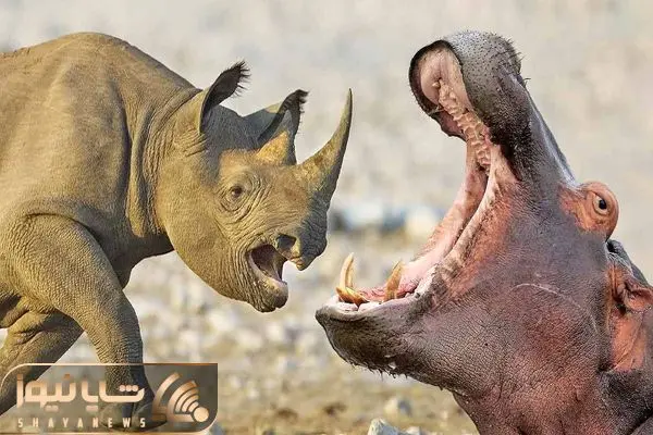 جذابیت حیات وحش؛ وقتی اسب آبی بدسگال میخواد با یه غرش گلوی کرگدن غول تشن رو جر بده