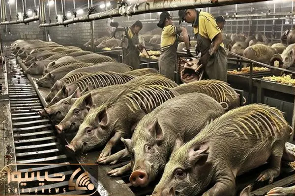 فرآوری خوک؛ خوک کریه المنظر و میجوشونه پشماش بریزه اسلایسش میکنه برای ساندویچ