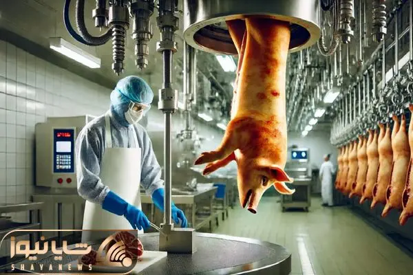 فرآوری خوک؛ پشم خوک حرومی و بعد جوشوندن میتراشه درسته چرخ میکنه واسه ساندویچ