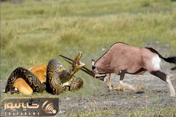 از جذابیت های حیات وحش؛ پیتون به چه جان کندنی گوزن رو از شاخ های تیزش می بلعه