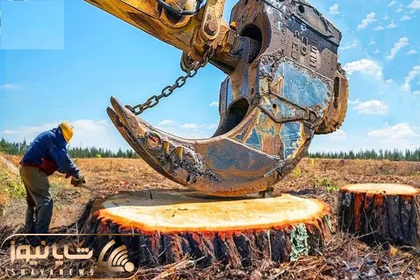 ابزارآلات غول پیکر؛ بیل مکانیکی غول موقع برش درخت برای افزایش کارایی چنگک شد