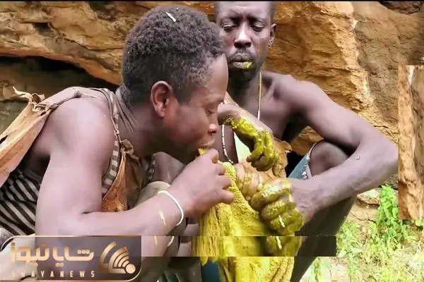 کباب خوک؛ بربرهای برهنه با چاقو روده خوک حرومی و کشیدن بیرون خام به نیش کشیدن