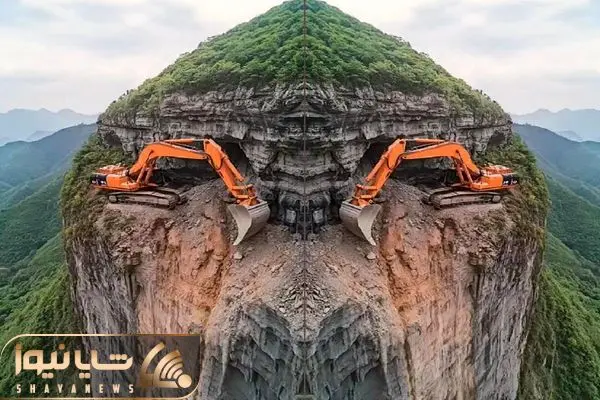 ابزارآلات غول پیکر؛ بیل مکانیکی غول موقع صاف کردن کوه غول سر خورد ته دره