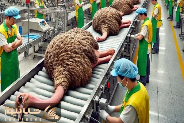 فرآوری شترمرغ؛ پرای شترمرغ زنده مفلوک دونده رو بعد باخت میسوزونه مثله و سوخاری میکنه