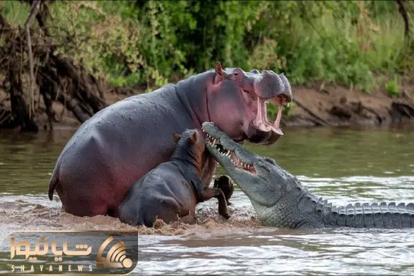 دیدنی رازبقا؛ اسب آبی بدسگال موقع صید ماهی تمساح شریری که مزاحم شد و ابتر کرد