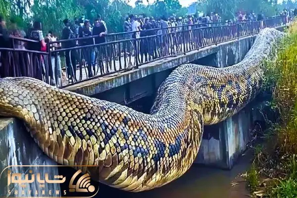 صحنه دهشتناک؛ پیتون غول بعد بلع فیل نای خزیدن نداشت از پل آویزون شد هضم شه