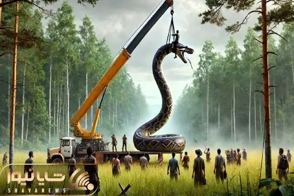 جابه جایی پرهیبت؛ پیتون هرکول و با بیل مکانیکی غول بردن و به صلابه کشیدن واسه سوپ