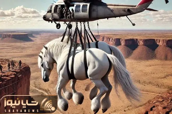 جابه جایی پر هیبت؛ اسب تک شاخ سفید رو میبنده به هلیکوپتر میکشه رو زمین تا سلاخی شه