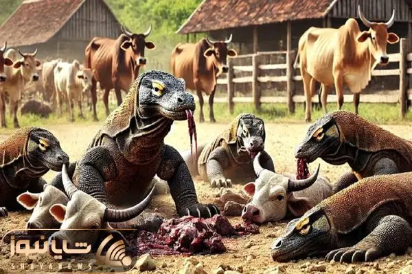 بدایع حیات وحش؛ کومودوی ددمنش با حمله به مزرعه بوفالوهارو خورد استخونشو گذاشت