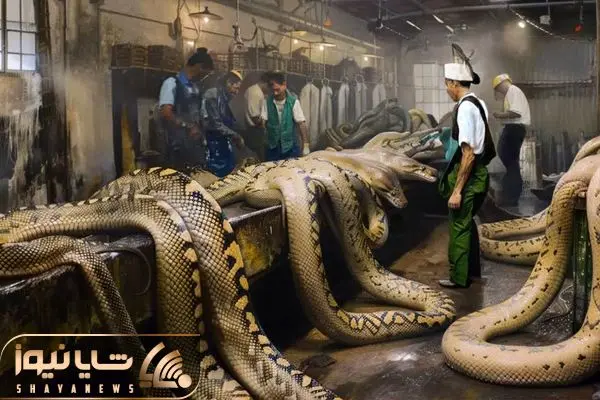 کارخانه حیوانات؛ شکم پیتون غول سفره کردن دلو رودشو تفت دادن خوردن پوستش شد کیف و کفش