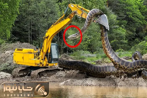 ابزارآلات غول پیکر؛ پیتون غول مزاحم کار اپراتور بیل مکانیکی غول شد پیچید دورش