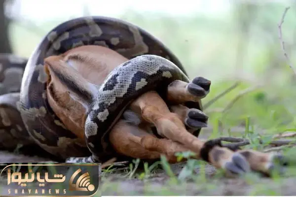 شاهکار حیات وحش؛ پیتون غول کله خر بعد بلع شیر نرم خزید غزال تیزپارو تناول کرد