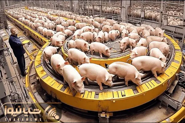 فرآوری خوک؛ خوک حرومی کریه المنظر قلمبه که شد میره تو دستگاه بشه سوسیس دودی