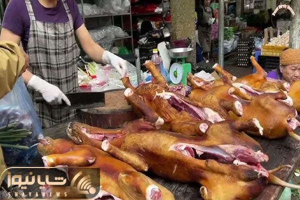 در این ویدیو ببینید که چگونه گوشت سگ بوداده را می پزند؛ پس از کشتن سگ‌های درشت آنها را به سیخ میکشند.