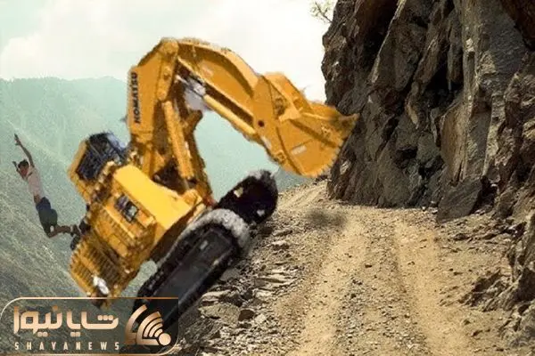 ابزارآلات غول پیکر؛ اپراتور بیل مکانیکی غول موقع کندن کوه صعب العبور داشت میرفت دره