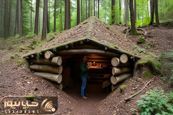 معماری خلاقانه؛ وسط جنگل با چوب و میخ خونه ساخته نقلی گل مالی کرده از سرما یخ نزنه