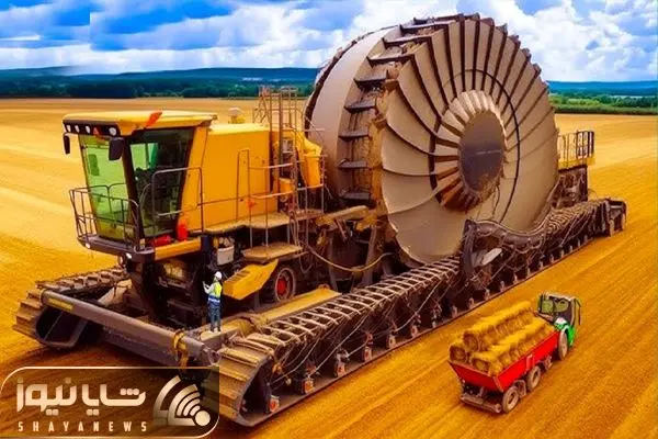 ابزارآلات غول پیکر؛ بیل مکانیکی غول برای برداشت محصول خرمن کوب غول نصب کرد