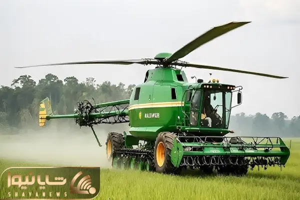 ابزارآلات غول پیکر؛ کمباین غول برای برداشت محصول خرمن کوب هلیکوپتری غول نصب کرد