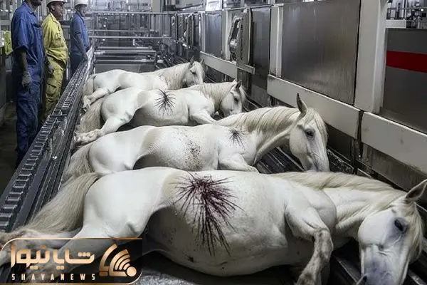 ببینید در مزرعه و کارخانه فرآوری اسب چه میگذرد؛ دامداران میلیون ها اسب را برای گوشت و پوست پرورش می دهند.