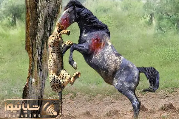 بدایع حیات وحش؛ اسب رمیده کله پلنگی که بهش حمله کرد مچاله کرد چسبوند به نهال