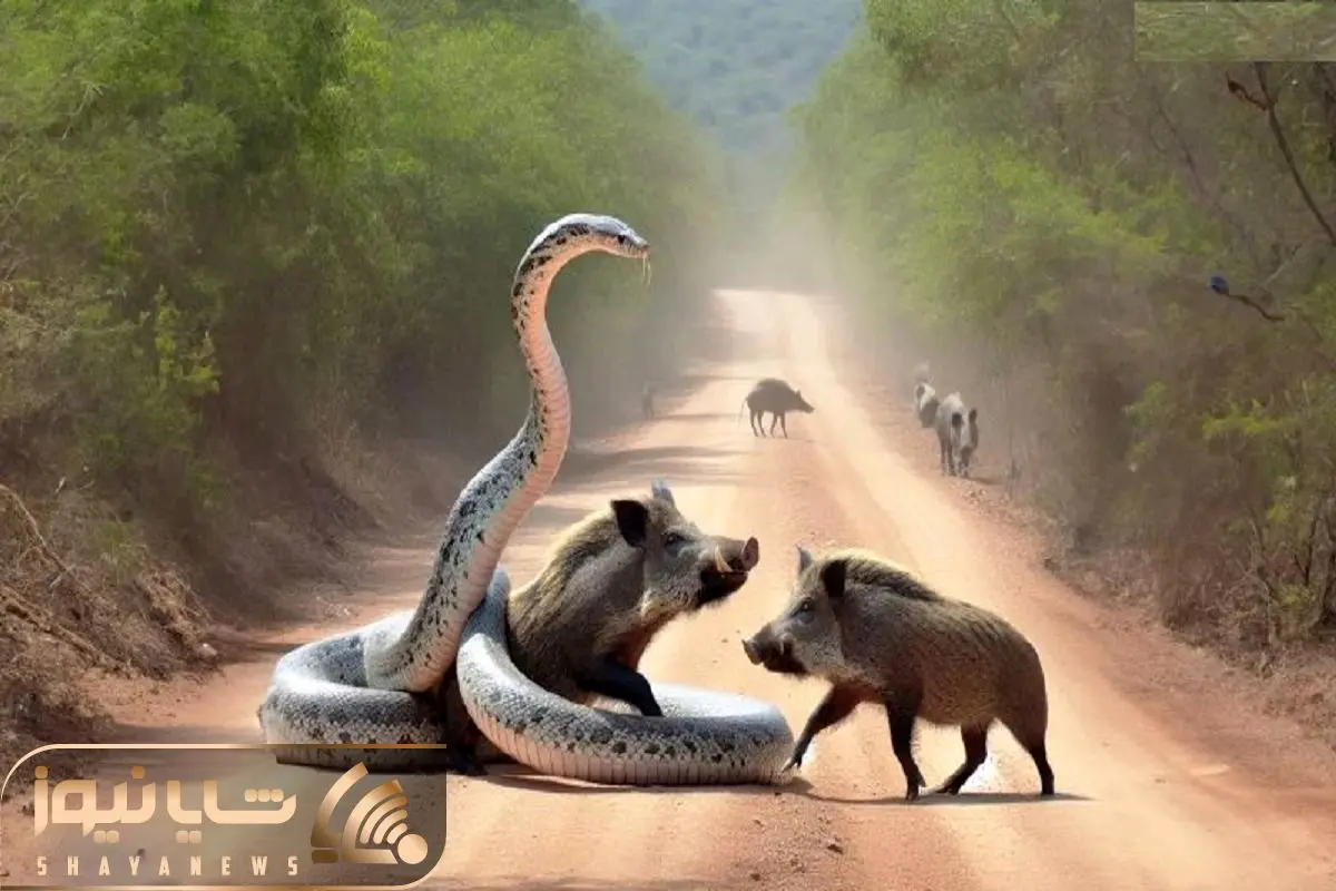 شاهکار حیات وحش؛ این پیتون غول پیکر ددمنش گرازهای وحشی اشتباه را جابجا کرد