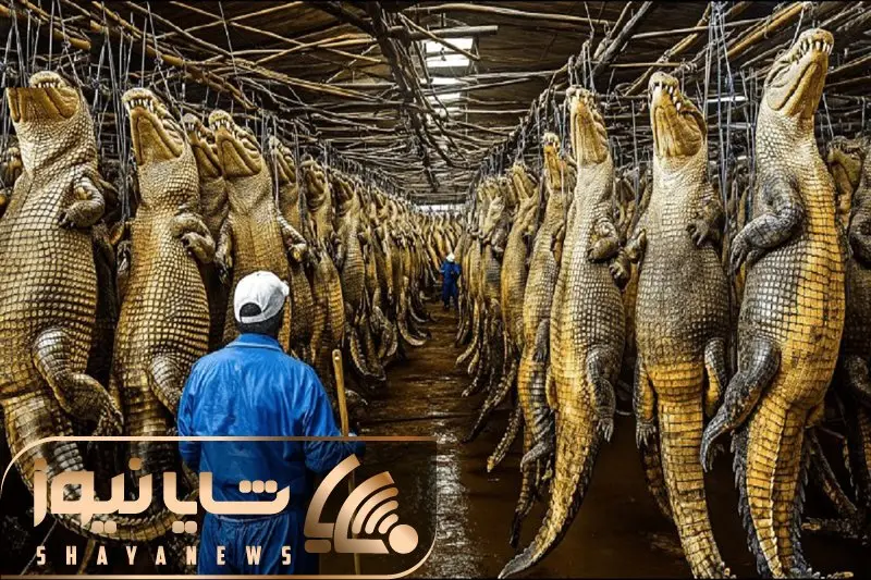 فرآوری تمساح؛ پوست تمساحی که با خوردن مرغ 500 کیلو شد و با پوست کن میکنه بهره کشی کنه